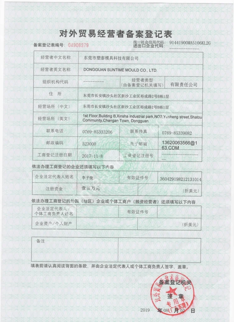 Suntime Precision mould manufacturing Co., Ltd is one of the leading manufacturers for plastic injection mold, die cast mold, custom injection molding, die casting production, CNC machining and other engineering projects. Over 80% of products are exported to North American (USA,Canada), Europe (Germany , UK, Portugal, Sweden, Denmark…) and Australia, etc,.