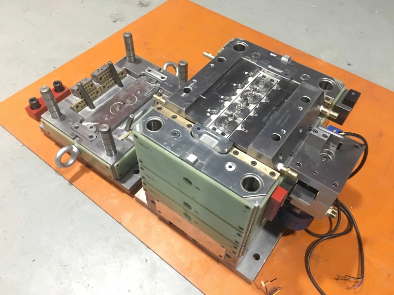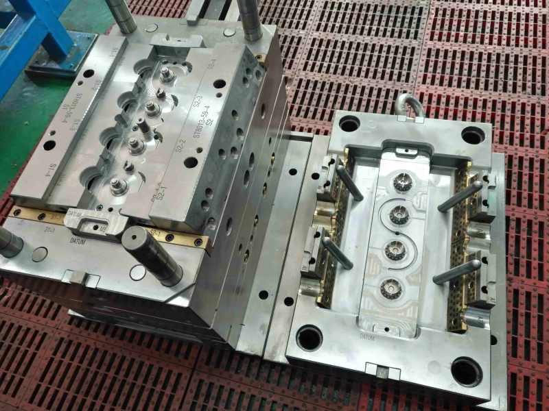 The injection mould tool is auto-unscrewing by motor and gear wheel. There are many insulation plates in mould four sides as the mold temperature is very high. This 4 cavity mold has moulding cycle time 39 seconds and the part tolerance is less than +/-0.02mm.